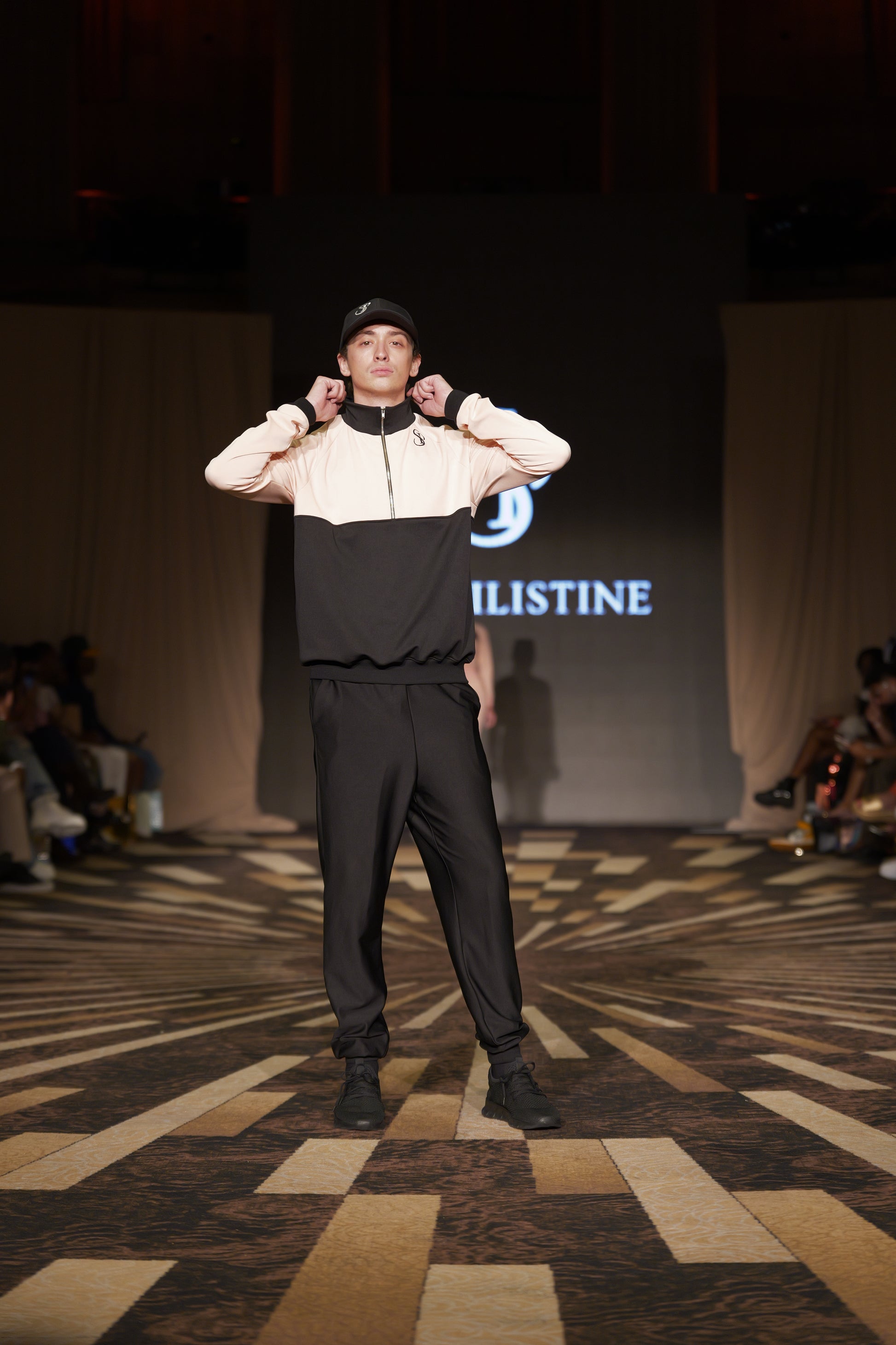 Made from stretch crepe scuba double knit, the fabric offers a smooth surface, subtle structure, and comfortable flexibility. The embroidered Sphilistine monogram at the chest adds a refined finishing touch.